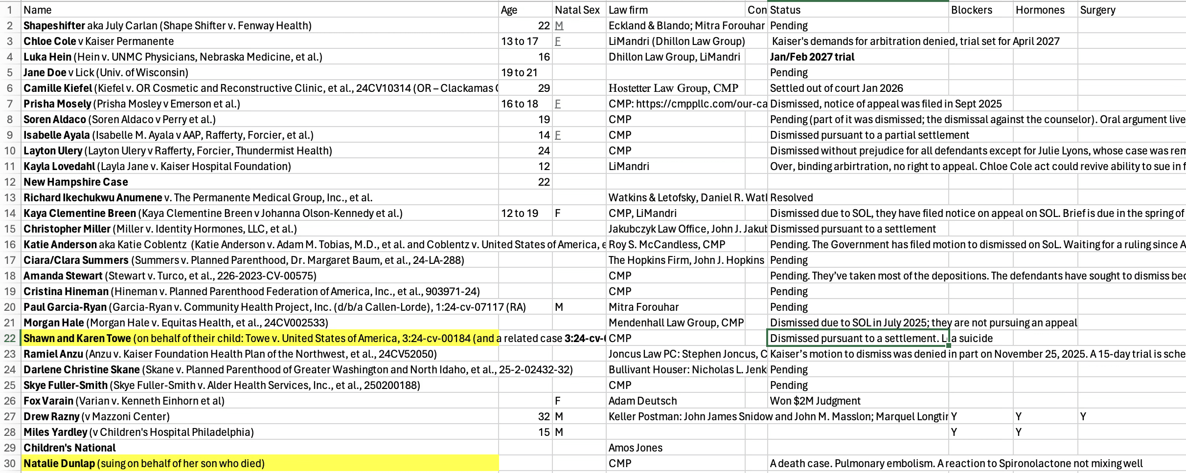 As do the facts of the case. Varian's situation does seem to have been on the harder end -- both in terms of what procedures happened when, and in the rhetoric from medical professionals justifying them. When WPATH advocates think you need to slow things down a notch, and are willing to testify so in court, you're gonna have a bad time. Benjamin Ryan has a list of other detransitioner (or -adjacent) cases, and it's a single page, and most of them are either more complicated or much less clear-cut.