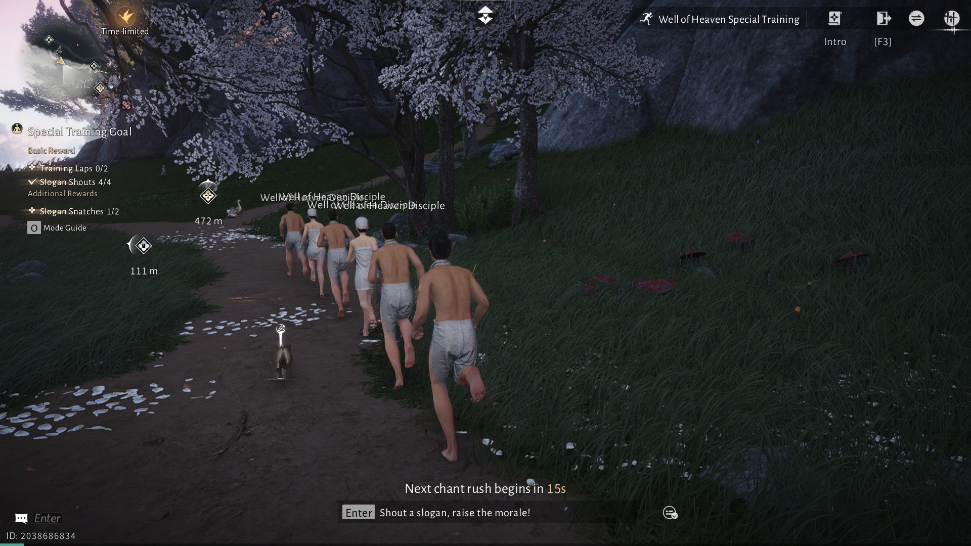 - a line of half-naked people ran past me and I was magically pulled in line (and stripped of clothes) along with them, and shouting slogans in time as you run gives you stat bonuses; this is also a multiplayer mechanic