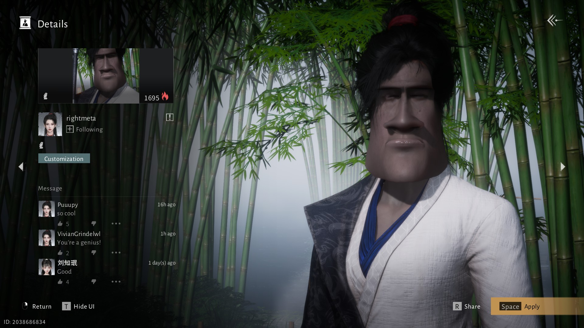 Sadly these devs are too based for this cursed land, and already had to roll back some things; AIUI in the first few days you were able to post custom images in chat as sort of 'stickers' for everyone to see, with predictable applications. Can't have shit in the jianghu.