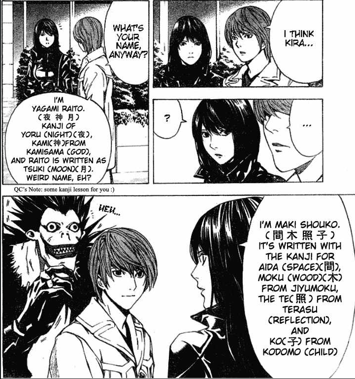 While perusing my folder of ten thousand unsorted images downloaded from 4chan, I happened to lay my eyes on the following hilarious exchange from an old fan translation of the manga Death Note.